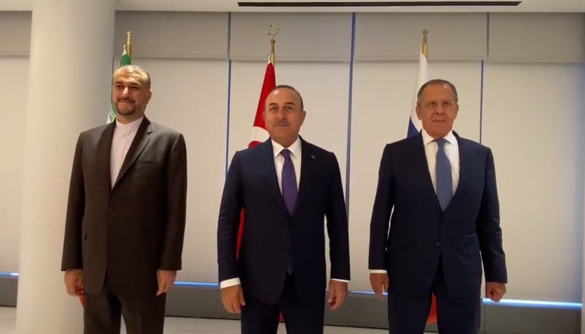Iranian Foreign Minister Hossein Amirabdollahian and his Russian and Turkish counterparts Sergei Lavrov and Mevlüt Cavusoglu respectively held a joint meeting here on the sidelines of the 77th session of the United Nations General Assembly.