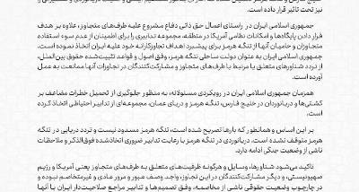 بیانیه وزارت امور خارجه درباره مواضع اصولی جمهوری اسلامی ایران راجع به امنیت و ایمنی دریانوردی در تنگه هرمز