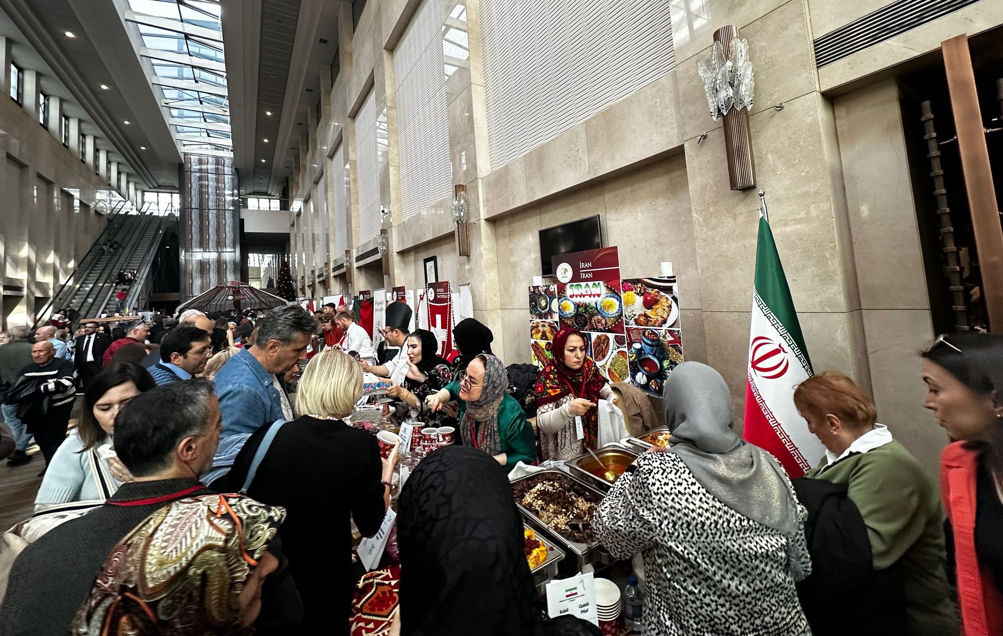 غرفه سه‌گانه جمهوری اسلامی ایران در بازارچه خیریه دیپلماتیک شامل بخش‌های صنایع‌دستی، غذای ایرانی و موسیقی سنتی ایران مورد استقبال گسترده بازدیدکنندگان قرار گرفت.