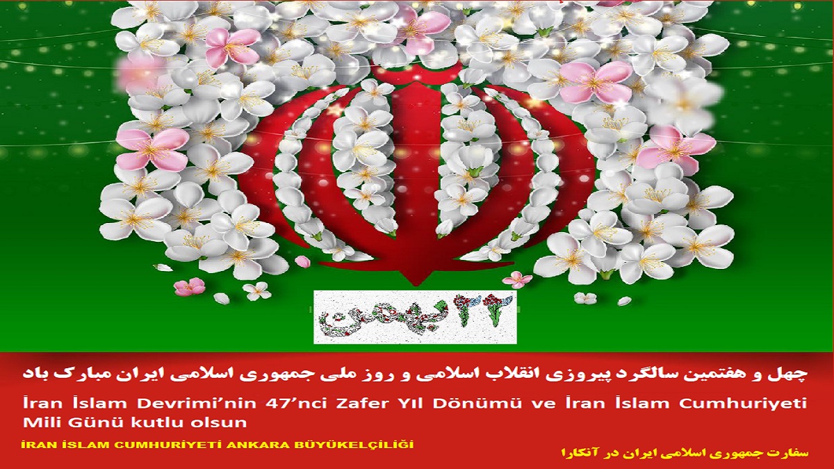 İran İslam Cumhuriyeti Ankara Büyükelçiliği olarak İran İslam Devrimi’nin 47’nci Zafer Yıl Dönümü ve İran İslam Cumhuriyeti Mili Gününü kutluyoruz.